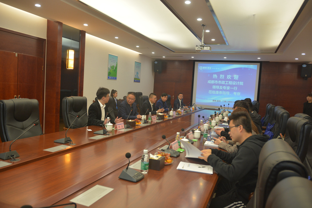 10月23日上午,成都市政工程設(shè)計院領(lǐng)導(dǎo)、專家一行蒞臨康泰集團參觀考察??堤┘瘓F銷售總監(jiān)何朝暉,技術(shù)副總監(jiān)朱鵬飛,以及水環(huán)境事業(yè)部葉富熱情歡迎各位領(lǐng)導(dǎo)的到來并進行了友好的交流。