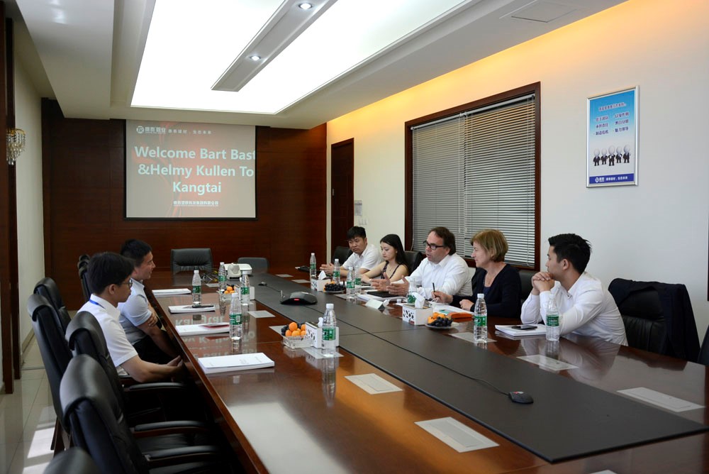 5月12日下午,荷蘭Greentom CEO Bart Bast、馬特里赫特市政府代表Helmy Kullen、荷蘭貿(mào)促會(huì)助理劉斯佳貴賓一行蒞臨康泰參觀考察。康泰集團(tuán)副總裁張文霖,銷售副總監(jiān)林輝輝熱情歡迎外賓的到訪并座談。